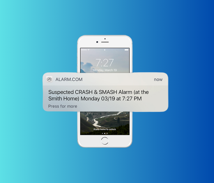 Because this action takes place on Alarm.com's secure cloud platform, it doesn't matter how effectively the intruder smashes your security panel.